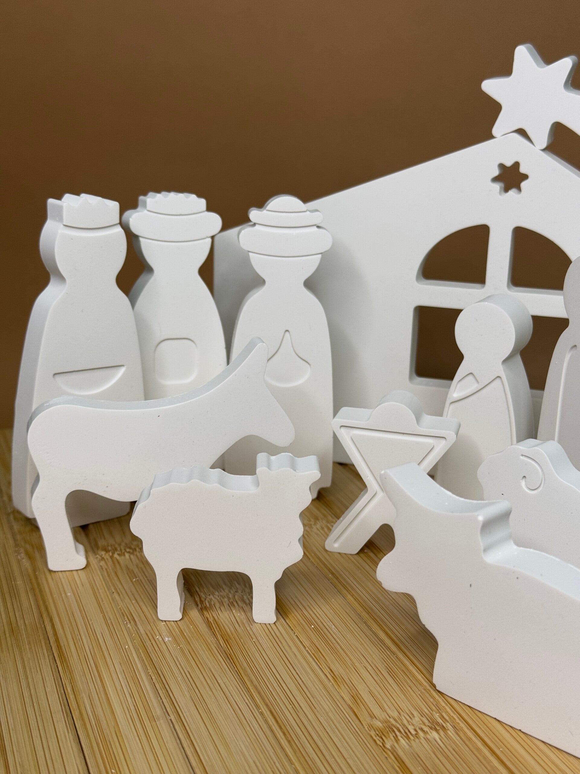 Moderne Weihnachtskrippe aus Keramik – schlicht & stilvoll