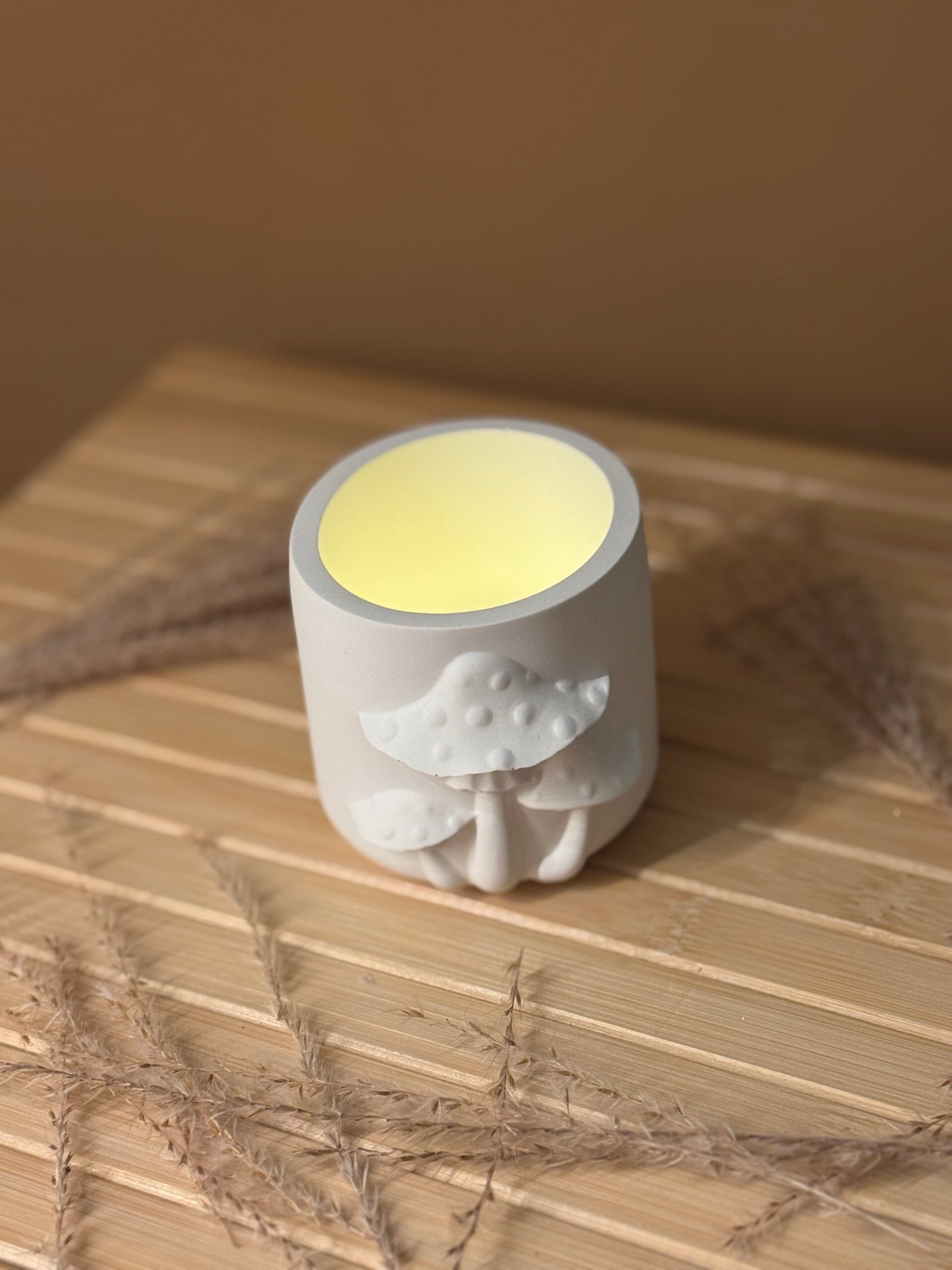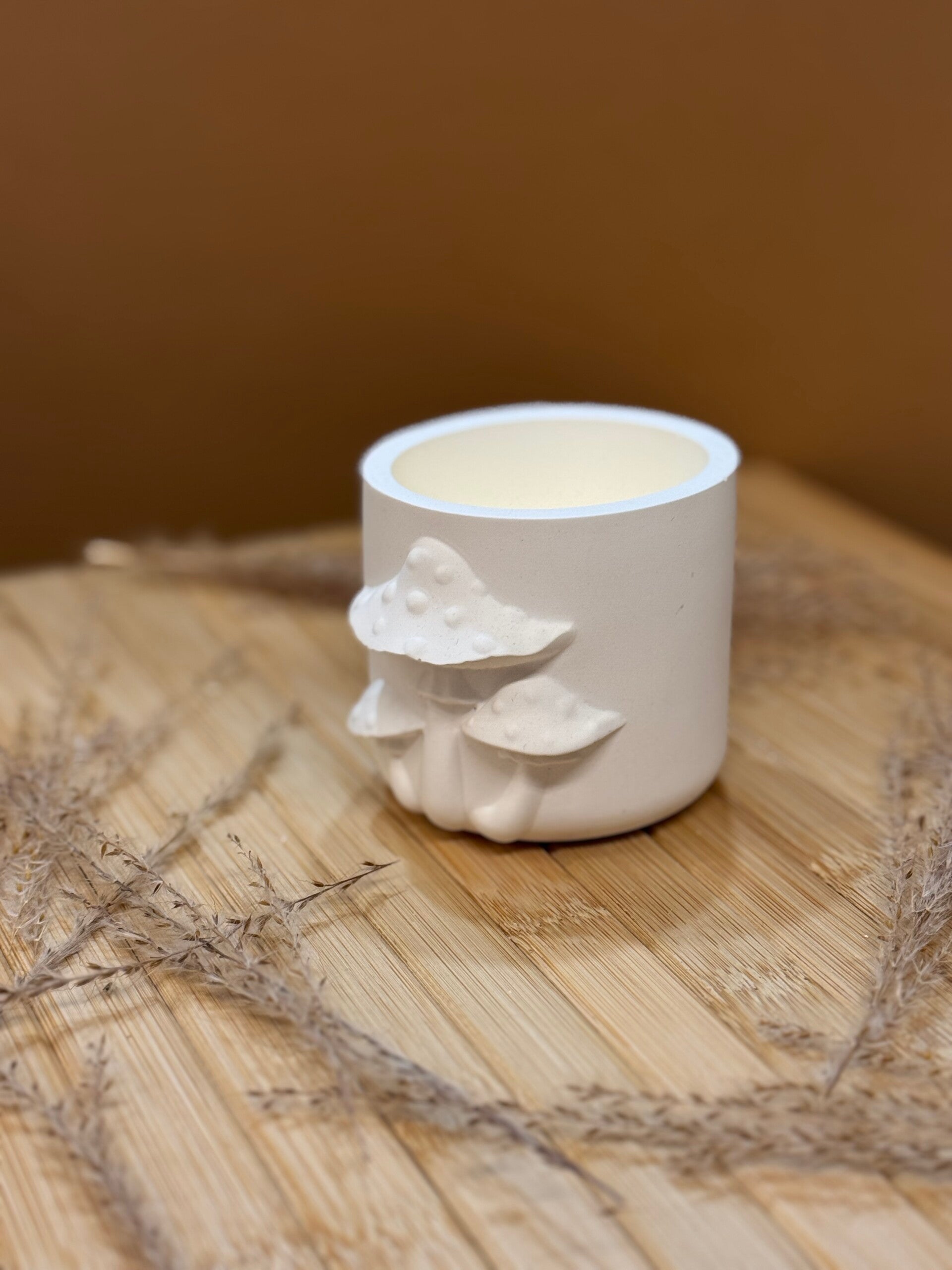 Handgemachter Kerzenhalter aus Keramik – Pilzmotiv im Relief